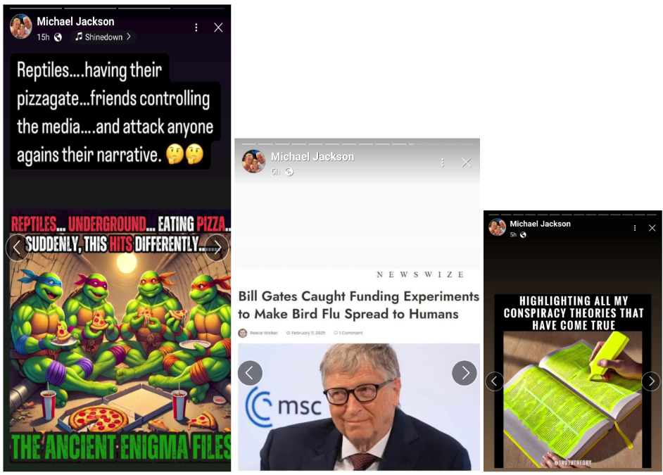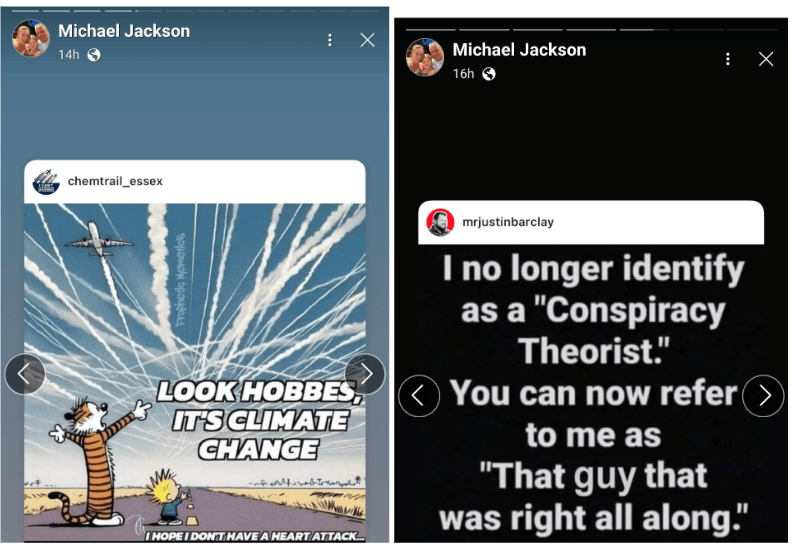 Jackson also shares “pizza-gate”, an antisemetic conspiracy theory claiming that shape-shifting Jewish lizard people were abducting children for ritual sacrifice in the basement of a pizza place in Washington DC.