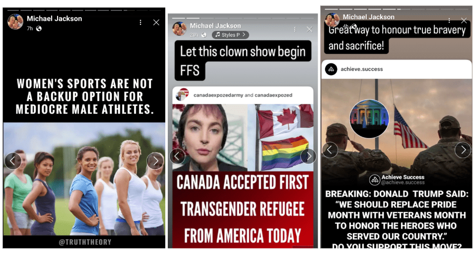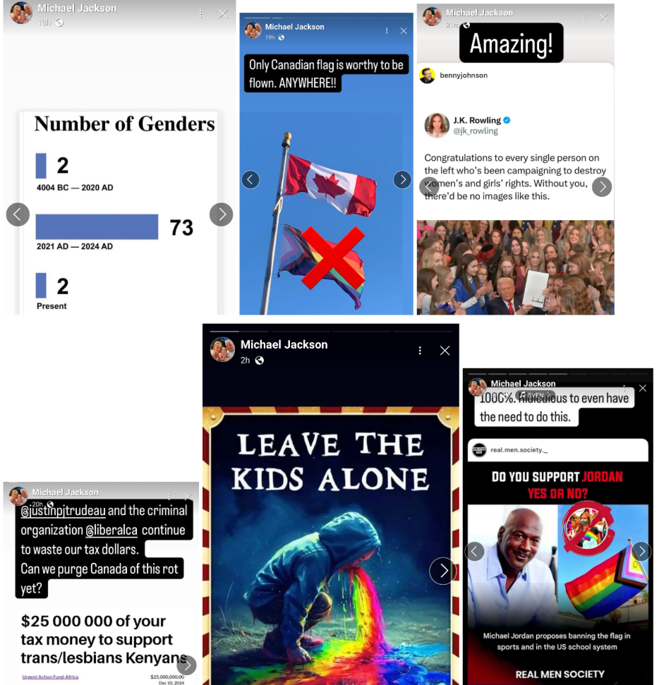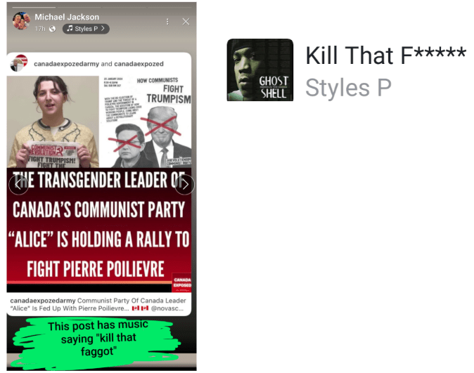 We begin with Jackson sharing a post about a trans woman. He has attached a song to the post called “Kill That Faggot”. The rest are mostly blatant transphobic posts.