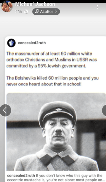 Many of Jackson’s posts in the Conspiracism section are also antisemetic.